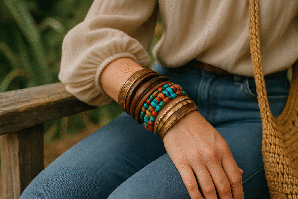 From sleek metallics paired with soft leather wraps to colorful beads mixed with fine chains, stacking gives you the freedom to experiment and evolve your look daily. You can go bold with chunky layers that make a statement, or keep it minimal with just a few dainty pieces that sparkle with subtle elegance. There are no hard rules—just guidelines that help you find your rhythm and create combinations that truly reflect your vibe.