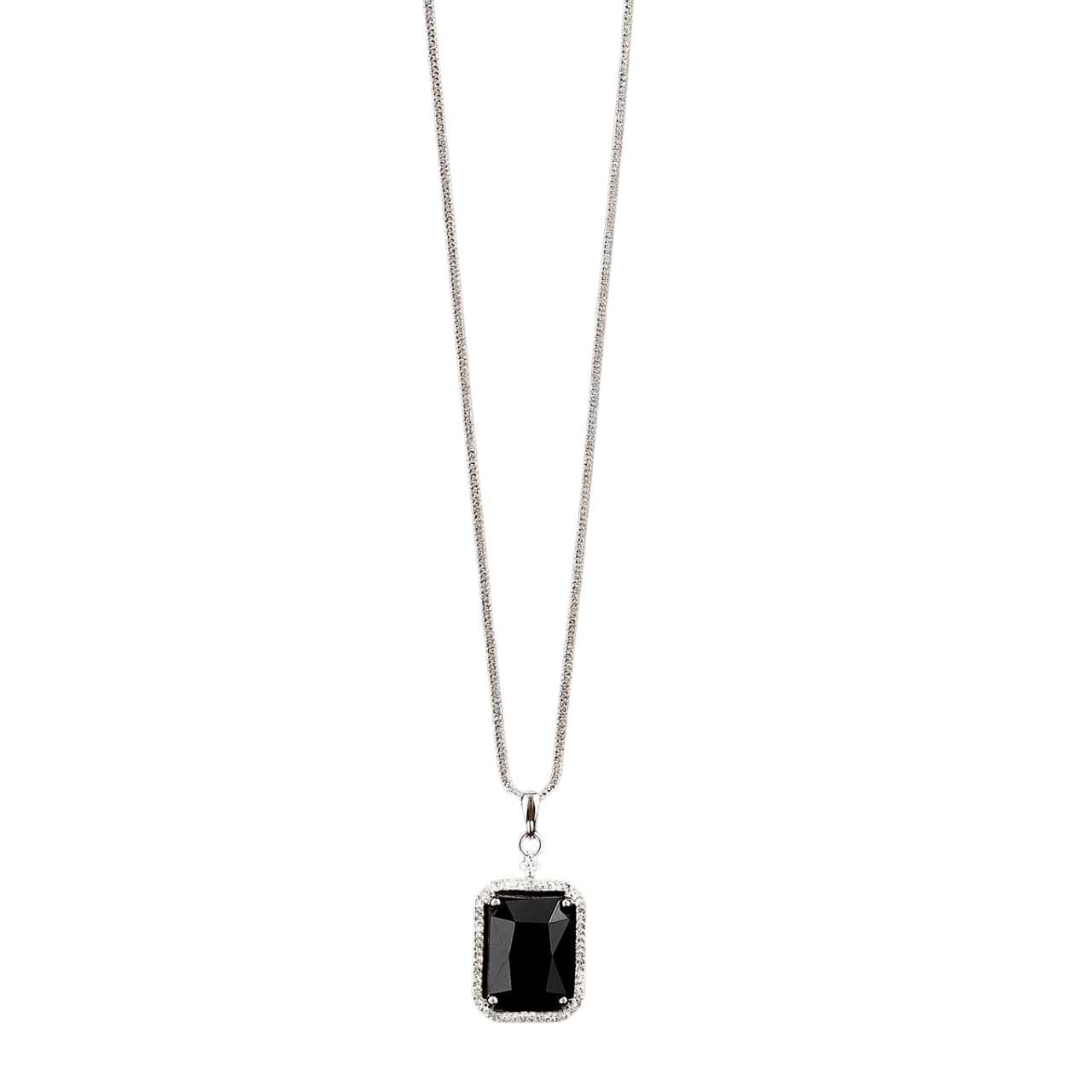 Suspended from a sleek silver-toned chain, this pendant offers timeless appeal that pairs effortlessly with both everyday wear and special occasions. A small accent stone above the frame adds a touch of charm, enhancing the brilliance of the overall piece.